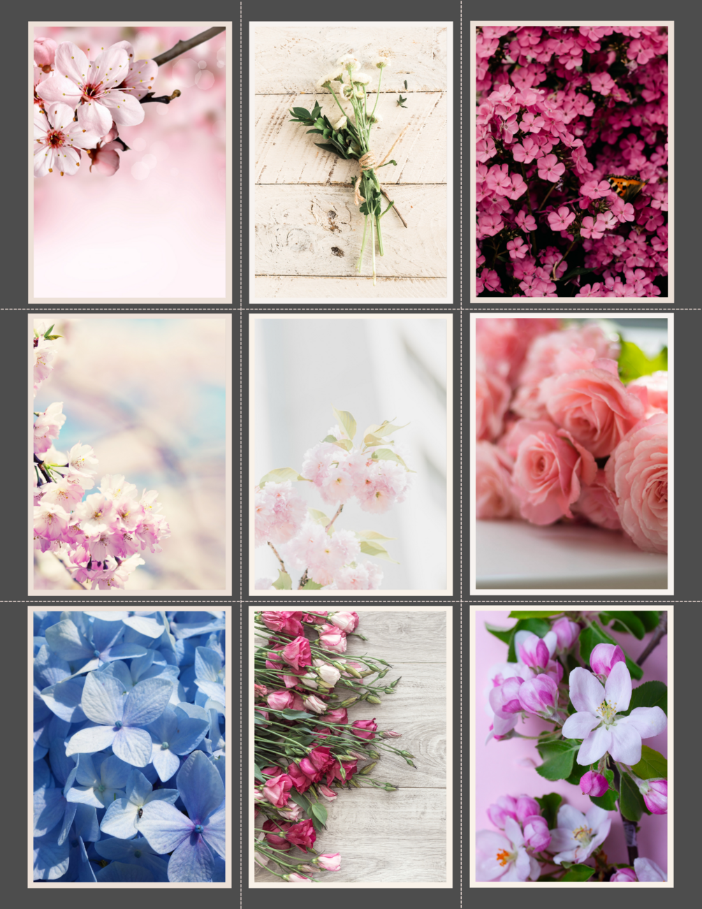 You'll get: 11 pages of 9 affirmations each (for a total of 99 different affirmation cards), 1 page of images for the backside of the cards